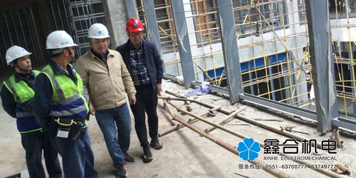 2019年4月10日,安徽鑫合機(jī)電總經(jīng)理曹克忠至上海市奉賢區(qū)上海金融基地酒店項目考察及現(xiàn)場指導(dǎo)工作,三局項目經(jīng)理李志佳、鑫合機(jī)電項目經(jīng)理湯大海及張友學(xué)陪同參觀考察。